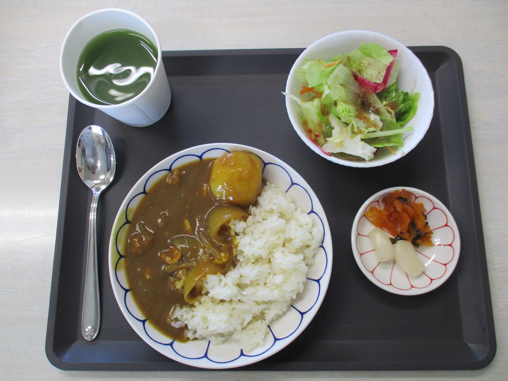 完璧なランチ。サラダ&青汁まで‼年末最終営業日もカレーが出るそう‼う、うれしい…
