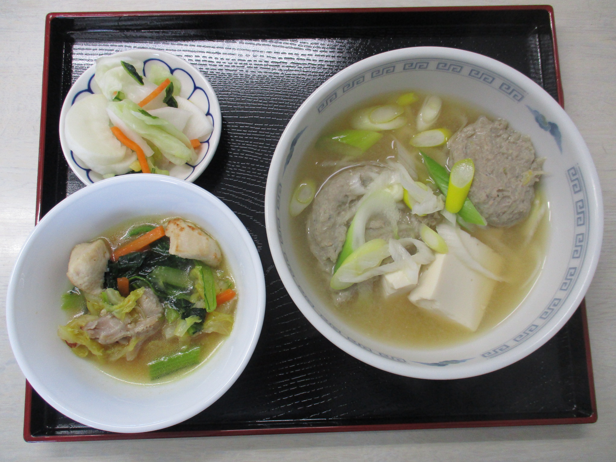 さんまのつみれ汁。この日はおかずもアリ、塩こうじ鶏肉炒めです。満足、幸せ‼