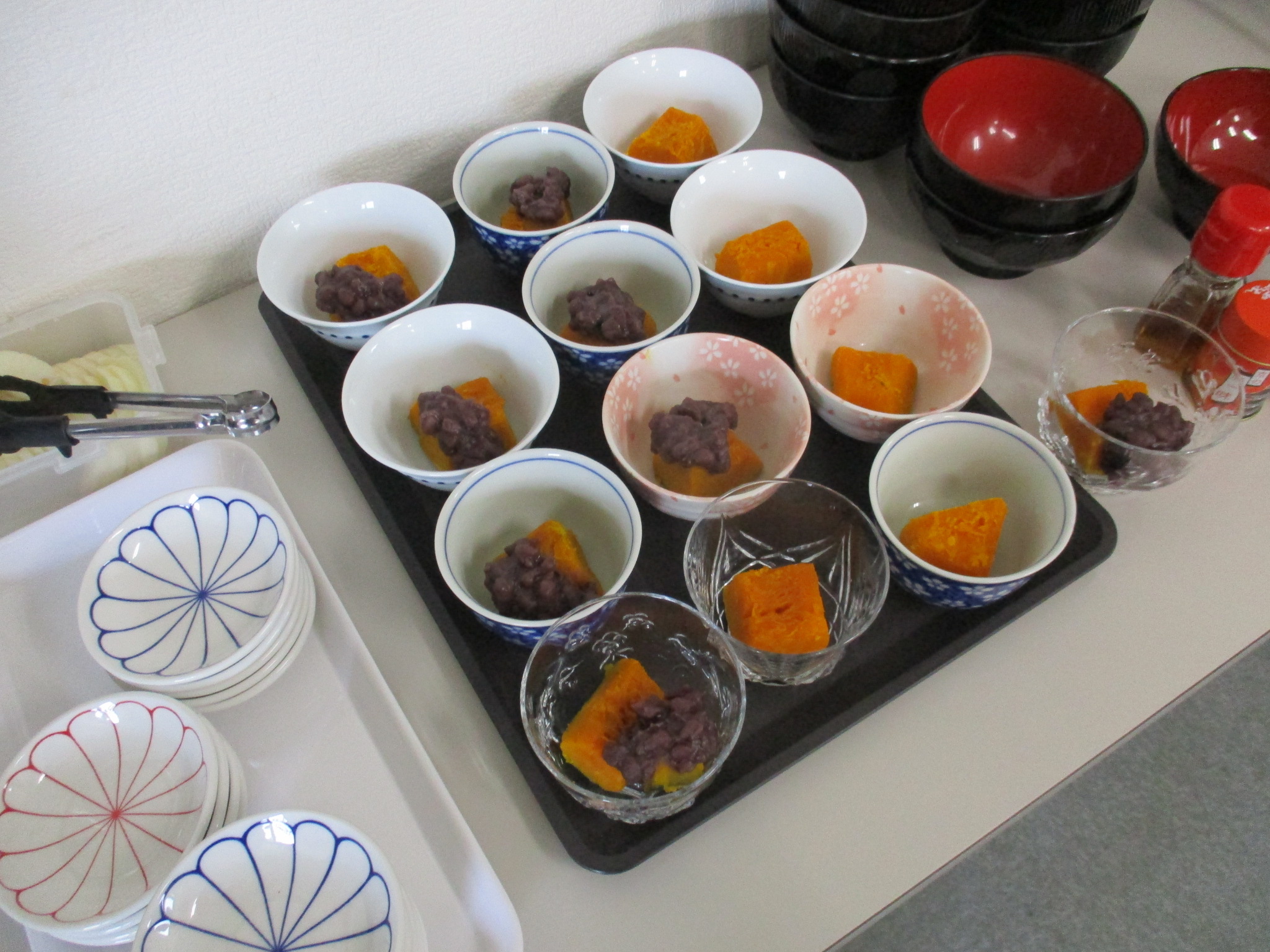 某日…社食では冬至かぼちゃがでました。煮崩れなしのきれいな姿‼あずきも一緒に。